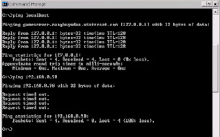 Utilitas ping digunakan untuk mengecek apakah jaringan kita sudah bisa berfungsi dan terhubung dengan baik, misalkan pada gambar diatas terlihat perintah ping LocalHost, jika kita melihat ada keluar pesan Replay form No IP ( 127.0.0.1 ) besarnya berapa bites dan waktunya berapa detik itu menandakan bahwa perintah untuk menghubungkan ke LocalHost dapat berjalan dan diterima dengan baik, namun seandainya jika kita melakukan ping untuk nomor IP yang tidak dikenal seperti gambar diatas maka akan dikeluarkan pesan Request Time Out yang berarti nomor IP tidak dikenal dalam jaringan tersebut ( ping 192.168.0.90 ). Untuk lebih jelasnya perhatikan contoh berikut :